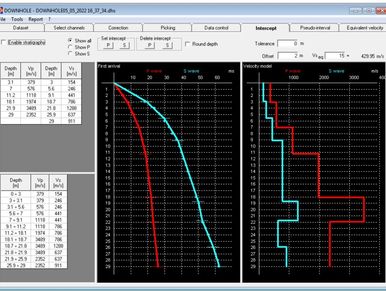 Software de procesamiento Vertical Seismic Survey (reflexiones verticales someras)