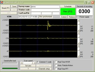 Software de adquisición de señales de velocímetro triaxial Geobox.